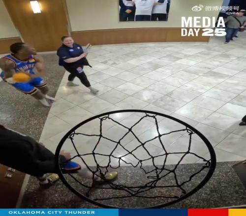 谁童年第一扣不是扣小篮筐雷霆全队玩小篮筐卡鲁索带头一顿玩