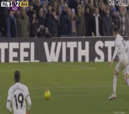 第90+2分钟,哈里-威尔逊任意球直接破门,富勒姆2-1布莱顿
