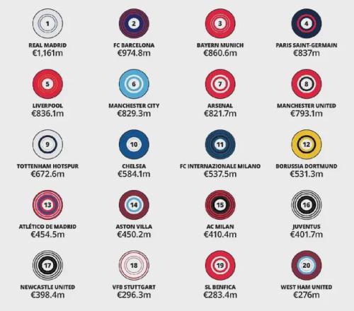 但无论如何,这份财富榜告诉我们如今一场职业足球比赛,不再像是一场90分钟的竞技,而是一场永不停歇的商业演出。